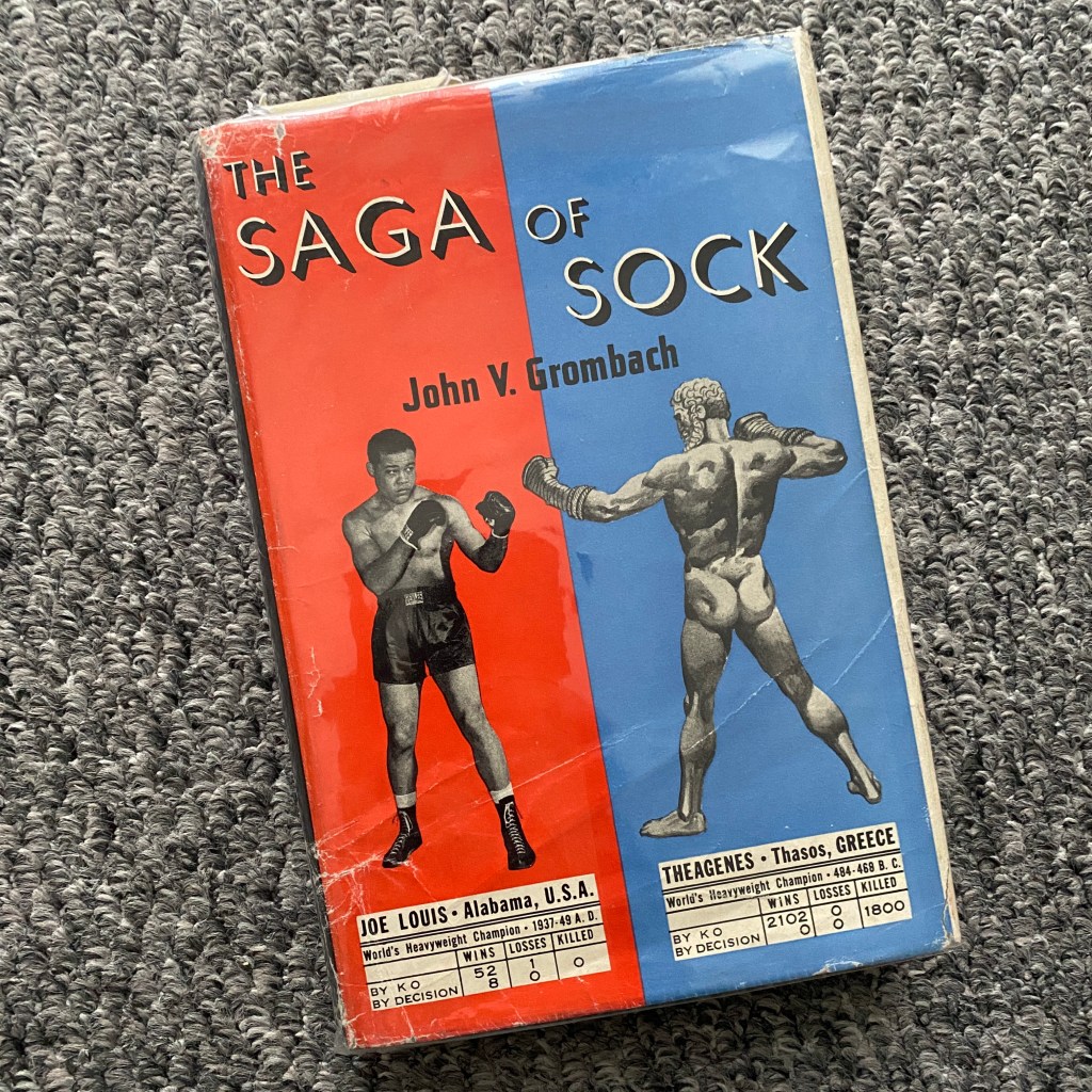 ‘The Saga of Sock’ by John V. Grombach, published in 1949, was a contemporary attempt to trace the history of boxing from its inception (as stated in this book) in Ancient Greece, through the place it held in the Roman Empire, to its reemergence in Georgian Britain, with the ultimate intention of showing the influence of that history on the, then, modern American boxing scene.
